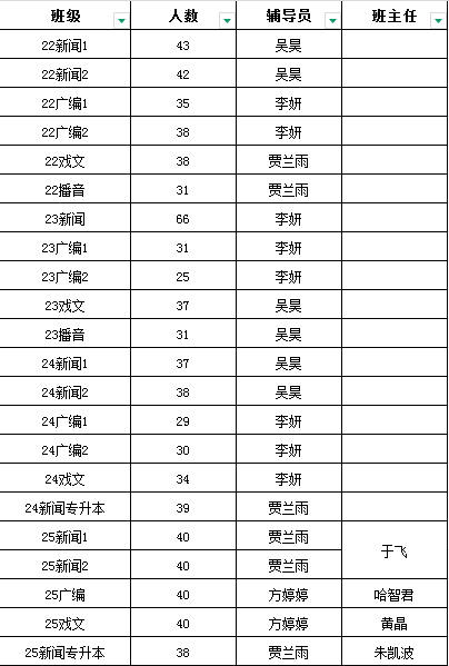 文化与传播学院25-26-1学期辅导员、班主任带班情况一览表