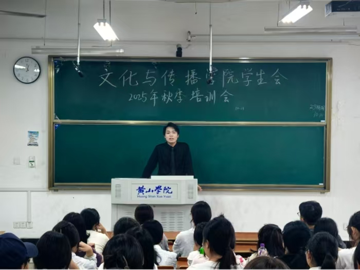 为进一步提升学生会干部履职能力,明确新学期学生会各部门工作方向,10月11日下午,文化与传播学院团委及学生会在我校文渊楼1301教室举行2025-2026学年秋季全体工作人员培训会议,会议由学生会执行主席艾唐骏主持,学生会全体成员参加会议。