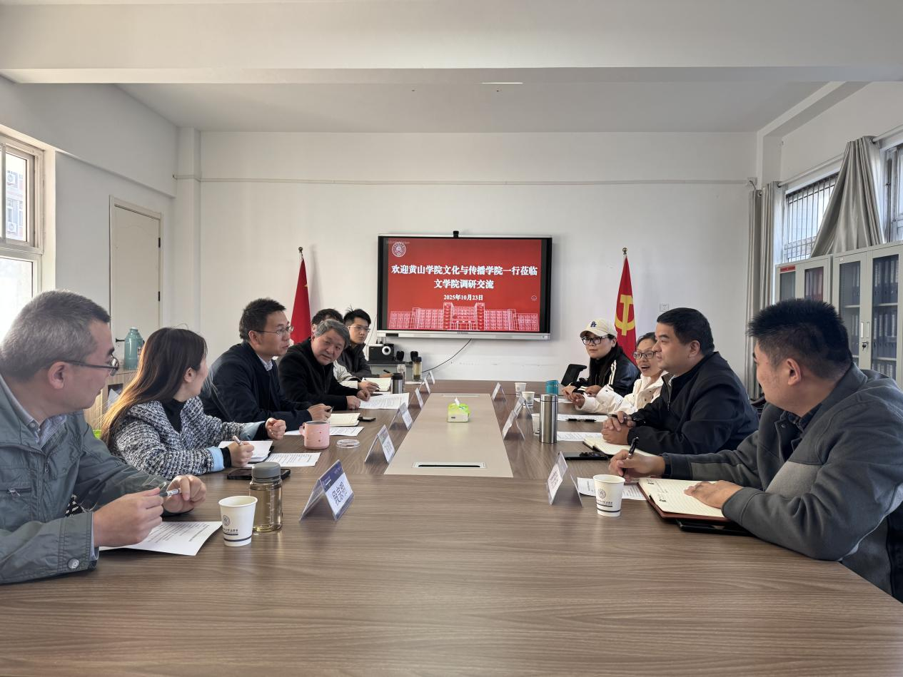 10月23日下午,文化与传播学院副院长刘罗玉,戏剧影视文学教研室主任冯韵,广播电视编导教研室教师黄天书,新闻学专业教师哈智君一行赴阜阳师范大学文学院开展调研交流。