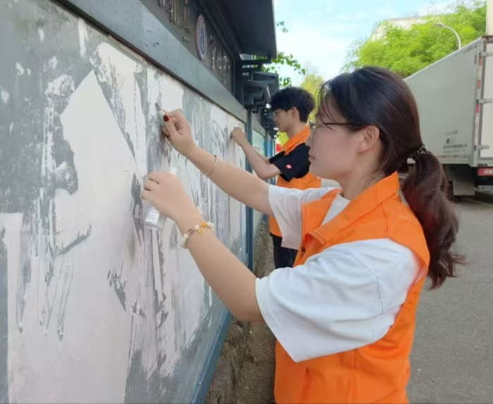 10月15日,志愿者在校园内集中开展公示栏清洁专项活动。队员们分工配合,利用清洁工具清除残留粘贴物与污迹,恢复多处公告区域的整洁面貌。活动彰显了志愿者们服务校园、奉献青春的责任担当,为打造文明校园贡献了志愿力量。