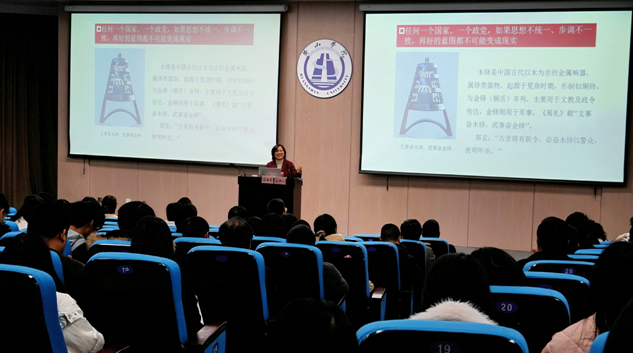 12 月 10 日下午,文化与传播学院与机电工程学院在文端楼一楼报告厅联合举办学习贯彻党的二十届四中全会精神专题宣讲会。马克思主义学院孙海霞教授应邀主讲,两学院师生代表两百余人参加学习。