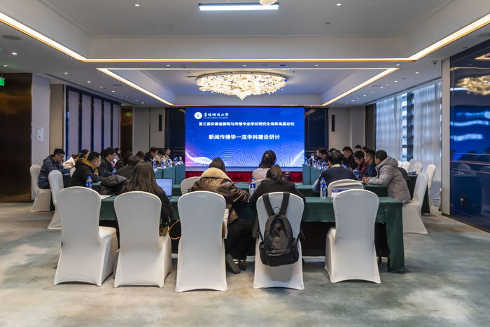 圆桌论坛环节,安徽大学新闻传播学院、安徽师范大学新闻与传播学院、合肥工业大学文法学院、阜阳师范大学文学院等省内15所高校的教师代表,围绕“新闻传播学一流学科建设”主题,就人才培养、学科建设、师资队伍建设、教学科研融合等关键问题展开深入研讨,交流经验、凝聚共识。文化与传播学院副院长刘罗玉就联合培养新闻与传播学专业硕士表达诉求,并表态对兄弟院校师生赴黄山进行学科实践、实习实训、田野调查等给予力所能及的协助。