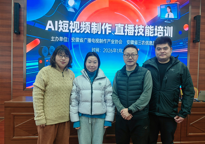 为顺应数字时代教育教学的需求,提升教师新媒体技术应用能力,1月27日-28日,我院教师汪海波、殷琳琳、黄天书、许瑞赴合肥参加由安徽省广播电视制作产业协会、安徽省三农信息服务协会联合主办的AI短视频制作与直播技能培训,沉浸式学习新媒体内容创作前沿技巧。