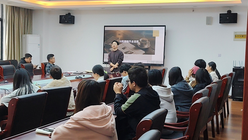 《视频时代:AI赋能下的影像职业新机遇》由AI影视应用专家周丛斌授课。周丛斌精通AI视频制作、流量逻辑与短剧后期增效,课程聚焦AI技术在影视创作中的落地应用,结合文传学子专业特点,讲解了AI辅助脚本优化、AI分镜生成、AI智能粗剪、AI调色包装、AI音效配乐等全流程实战技巧,重点演示了AI技术如何提升短剧创作效率、强化内容质感、降低创作成本,为文传学子掌握AI技术赋能编导创意、产出高传播力与专业度短剧作品提供了可落地、可操作的实用方法,助力学子拓宽实践创作思路。