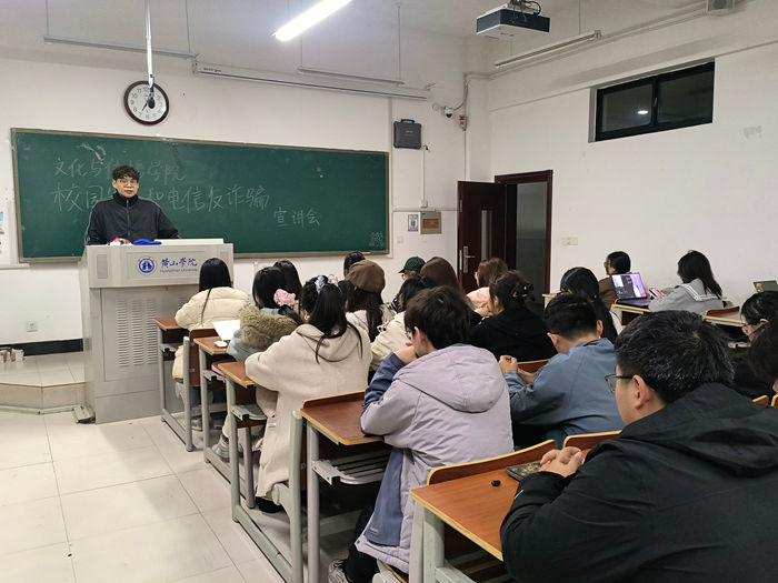 为强化校园安全教育,提升大学生安全防范能力,有效防范电信网络诈骗及各类安全风险,3月30日晚,文化与传播学院易班工作站在文端楼2102教室举办校园安全暨电信反诈骗专题宣讲活动,各班学生代表近40人参与,共筑校园安全思想防线。
