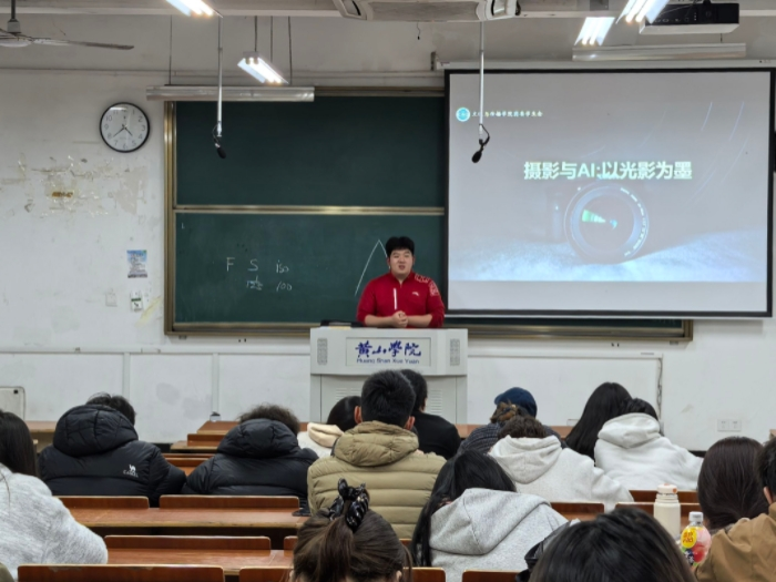 3月22日下午,“听松青年说:摄影与AI——以光影为墨”主题活动在文渊楼1201教室举行。本次活动由文化与传播学院主办,2024级新闻学专业王亚辰同学担任主讲人,吸引了各二级学院摄影及AI创作爱好者70人参加。大家在艺术与科技的交融碰撞中,共同探索影像创作的全新可能。